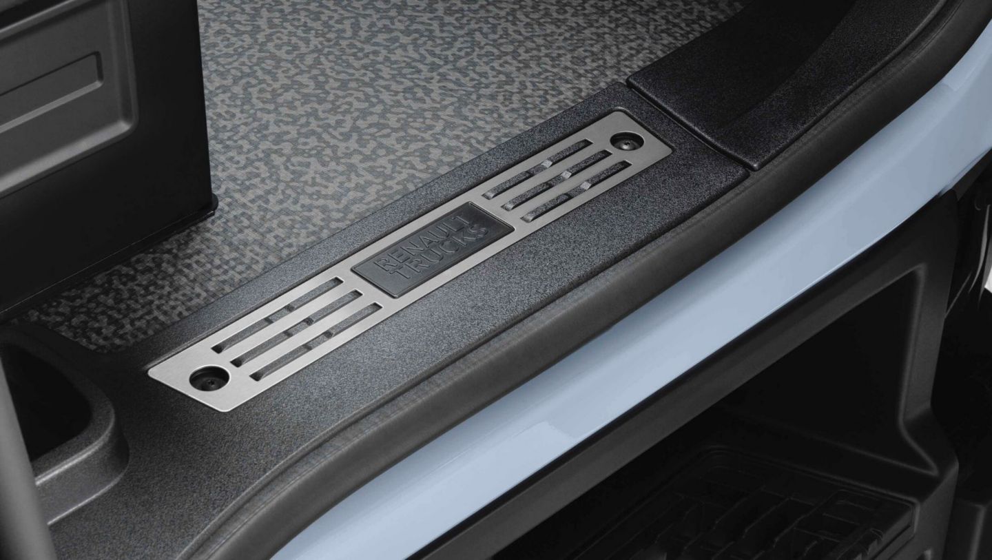 Het interieur van de Renault Trucks T laat een zeer hoog afwerkingsniveau zien, inclusief stoelen met een volledig stoffen bekleding in luxe uitstraling, standaard twee armleuningen voor de chauffeur en een lederen stuurwiel. De stuurkolom is vanaf het nieuwe modeljaar standaard in drie richtingen verstelbaar. De voertuigen uit de T-serie krijgen standaard een carbon look dashboardafwerking, aluminium handgrepen en de cabine-instap wordt afgewerkt met metalen portierdrempels. De Renault Trucks T en T High 2020 zijn optioneel ook uit te voeren met een kastenwand tegen de achterwand in plaats van het tweede bovenbed. Deze extra opbergruimte heeft een opbergvolume van 221 liter verdeeld over drie kasten en zijn voorzien van binnenverlichting.